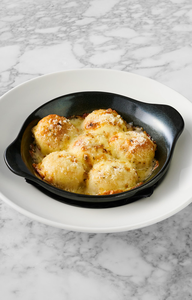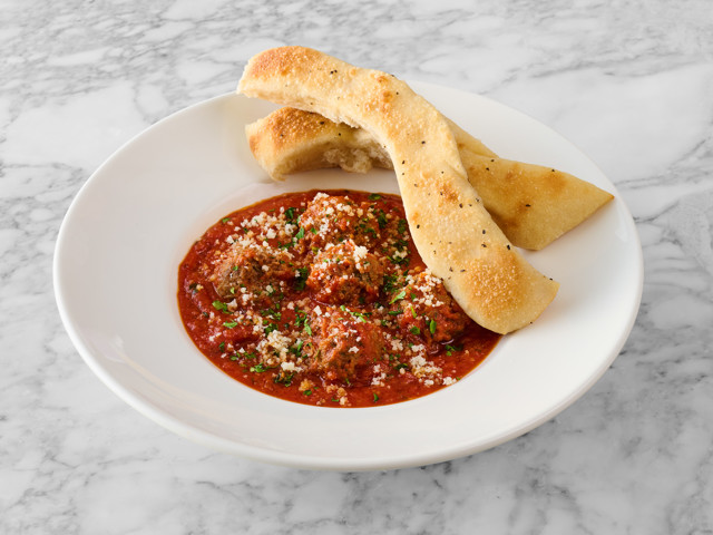 Succulent beef & Parmesan cheese meatballs baked in a rich tomato and garlic sauce with a hint of chilli. Topped with Gran Milano cheese, fresh parsley and served with Dough Sticks