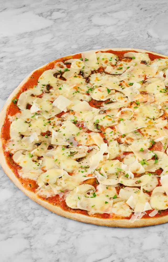 A tribute to our founder who loved mushroom pizza and Venice. Chestnut mushrooms, tomato with garlic, mozzarella and rosemary, finished with parsley and Gran Milano cheese