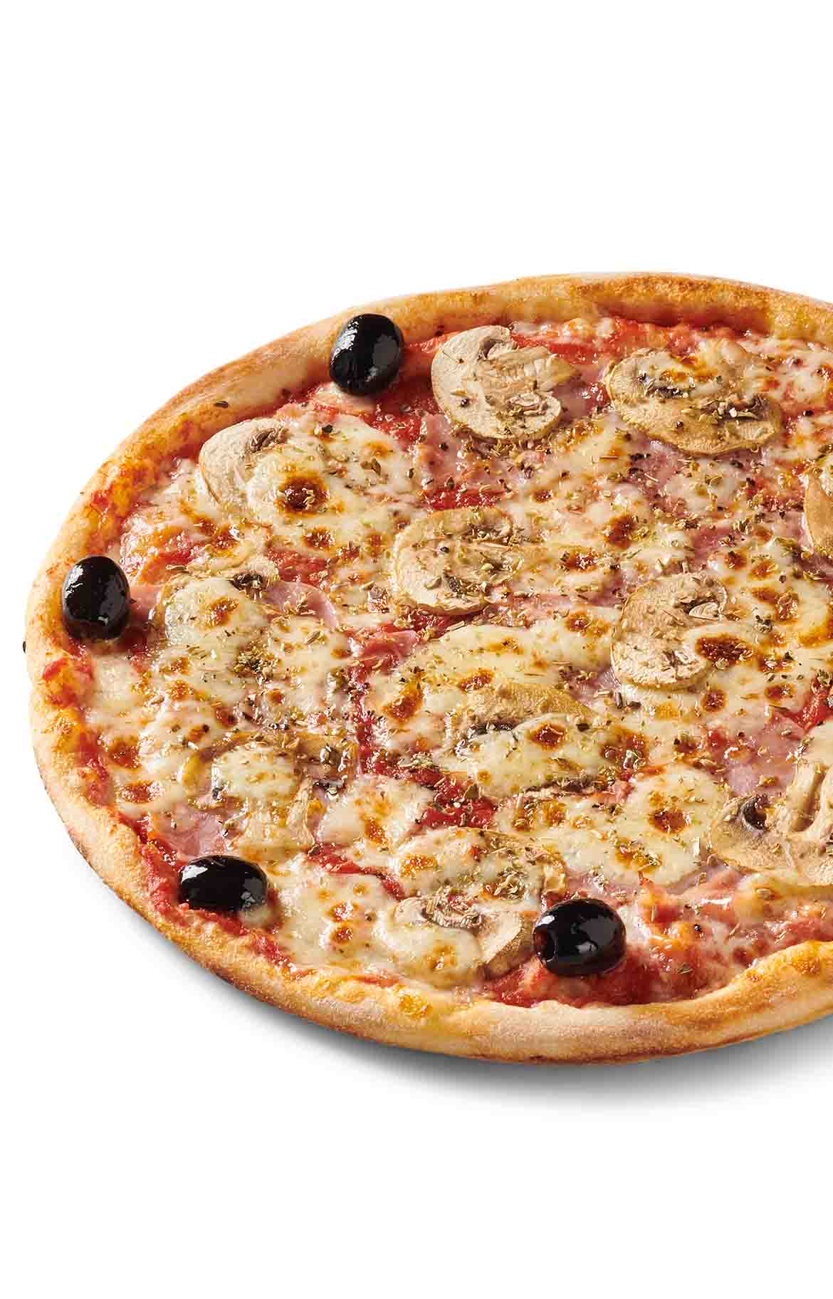 The Queen. Ham, black olives, mushrooms, mozzarella and tomato