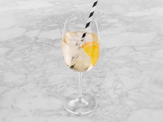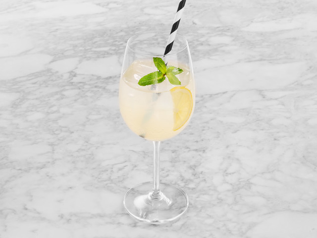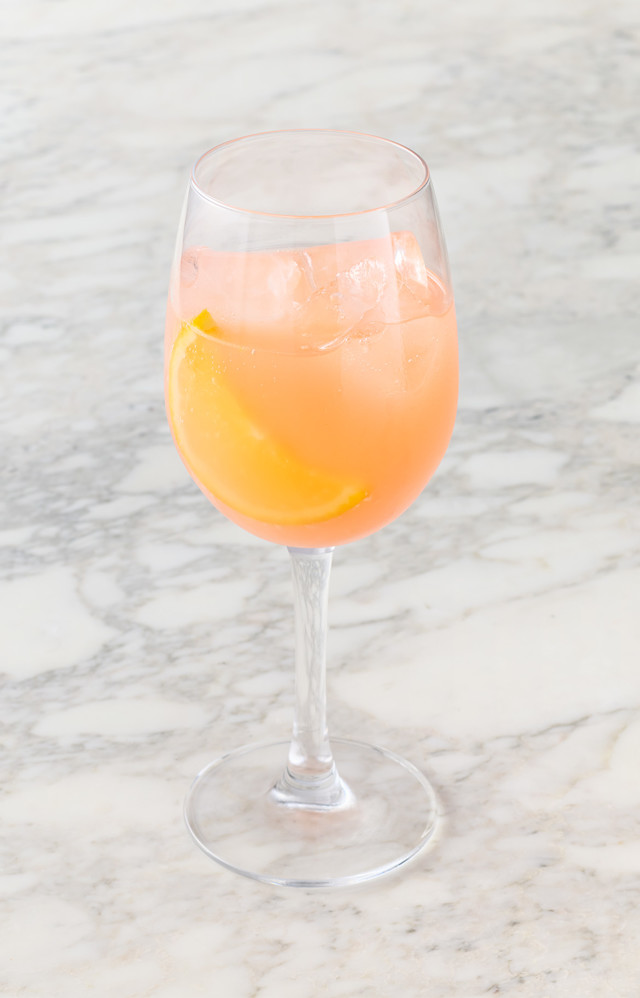 Pinot Grigio Blush, topped with refreshing soda and lemon