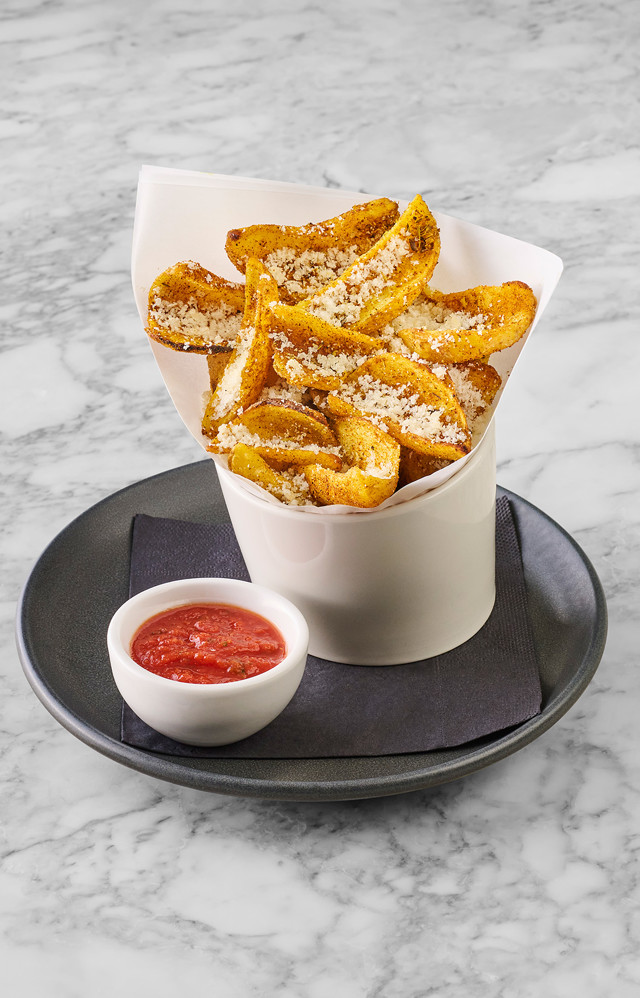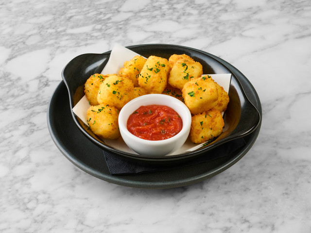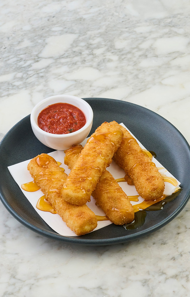 Say cheese! Melting mozzarella coated in crisp, golden breadcrumbs. Served with a tangy Italian tomato dip and a drizzle of sweet hot honey