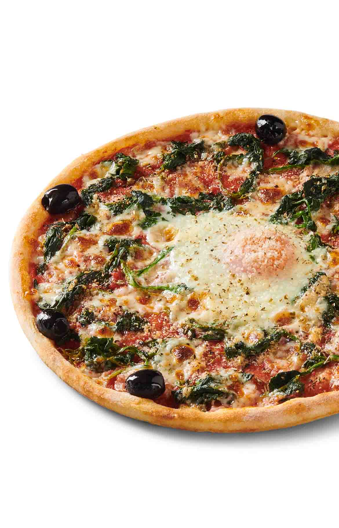 The one with the 'egg and spinach', plus mozzarella, tomato, Gran Milano cheese, black olives and garlic oil