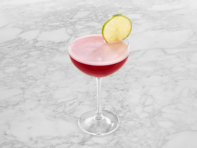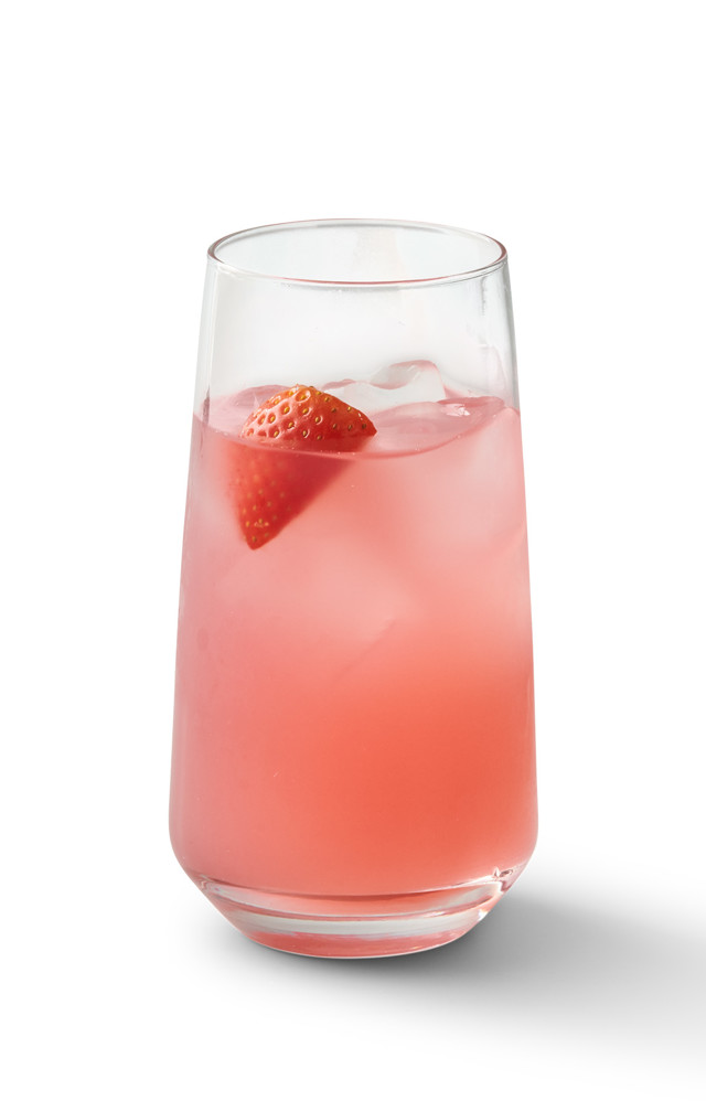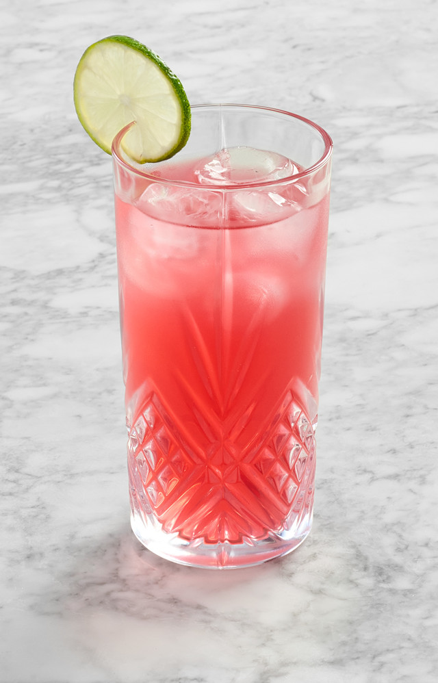 Pretty in pink! 42 Below Vodka, raspberry liqueur, cranberry and lime topped with lemonade.