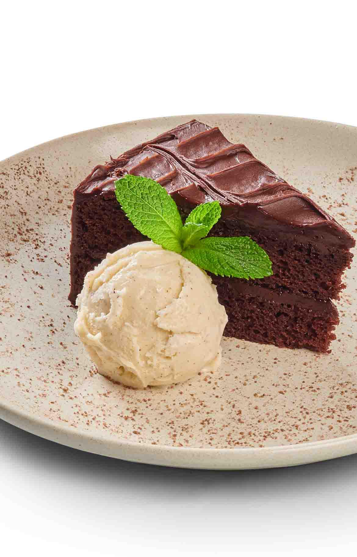 A chocolate lover's dream. Served warm with chocolate sauce and topped with vanilla gelato and chocolate twists