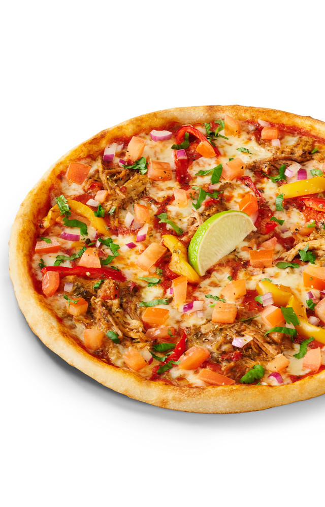 Havana comes to PizzaExpress. Zesty, marinated slow-cooked pulled pork with garlic, herbs and a hint of chipotle chilli, tomato, mozzarella, roasted peppers, tomato & red onion salsa, fresh coriander and lime.