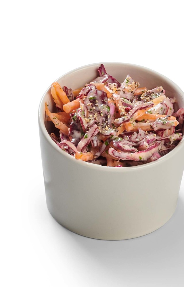 Crunchy red & white cabbage, carrot, red onion and parsley, freshly tossed in our house dressing