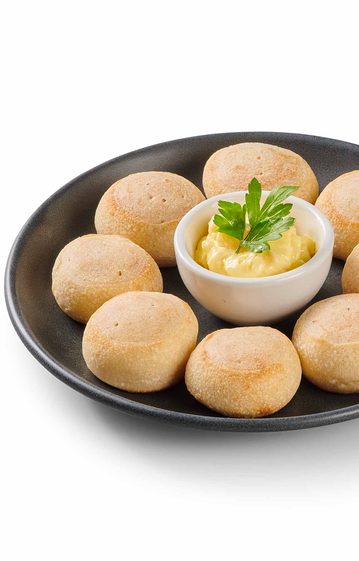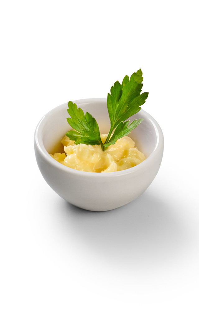 With our famous garlic butter. Freshly made daily using creamy butter and whole crushed garlic
