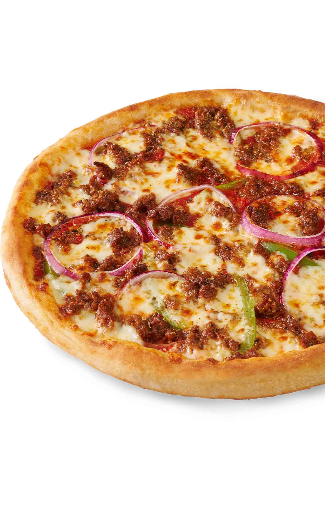 A classic which first appeared on our menu in 1999, updated with a new, tastier recipe. Lightly spiced ground beef, red onion, green pepper, tomato and mozzarella, finished with parsley