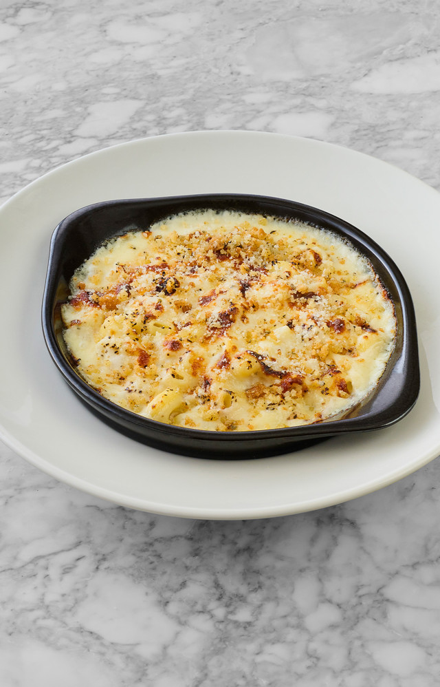 A comforting classic. Macaroni baked in a rich three-cheese sauce with mozzarella, Cheddar, Gran Milano cheese, garlic oil and topped with crisp breadcrumbs