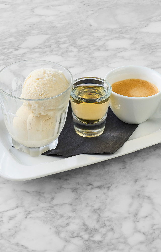 A sophisticated end to your meal. Cool vanilla gelato, Frangelico hazelnut liqueur [25ml, ABV 20%], and a dark, rich shot of Espresso