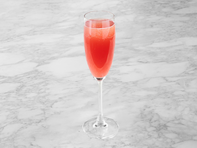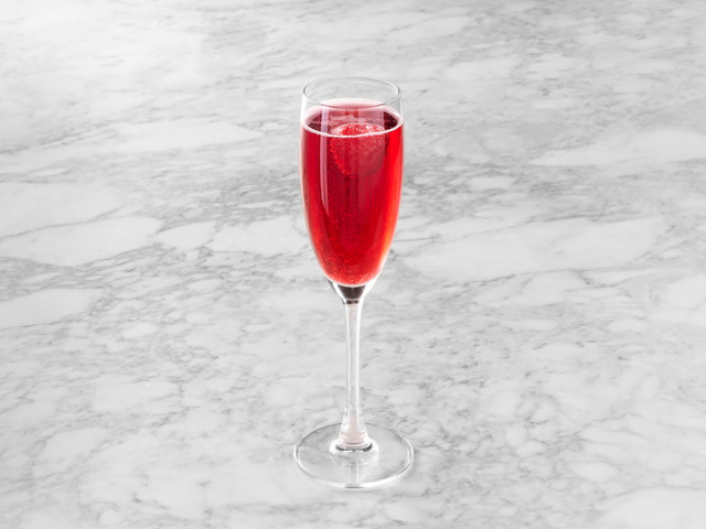 Our Prosecco with fruity pomegranate syrup and a fresh raspberry.