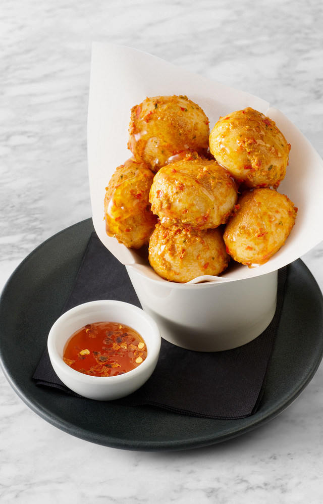 Delicious Dough Balls, tossed in chilli & basil sauce and all drizzled with hot honey. A combination of heat & sweet that's hard to beat